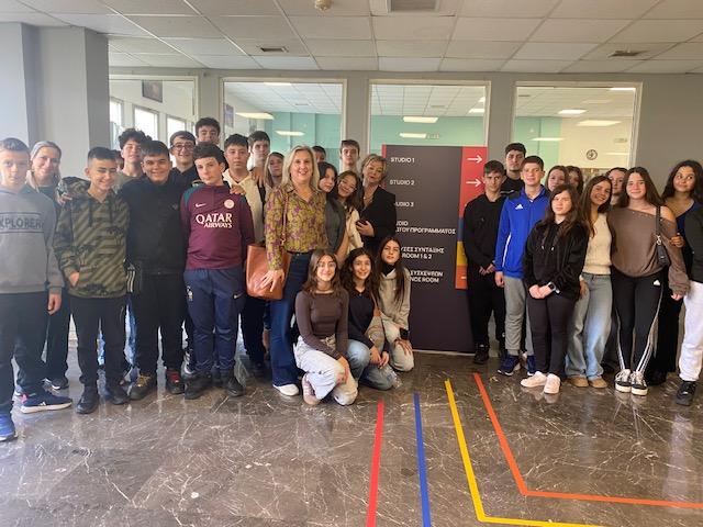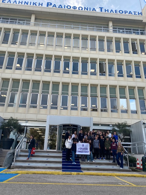 Ένα ταξίδι στο κέντρο της ενημέρωσης πραγματοποίησε ο Όμιλος Δημοσιογραφίας, επισκεπτόμενος το εμβληματικό Ραδιομέγαρο της ΕΡΤ στην Αθήνα, την Τρίτη 18 Νοεμβρίου. Η ομάδα των μαθητών με υπεύθυνη τη Διευθύντρια του σχολείου κ. Σοφία Κανταράκη και συνοδό τη φιλόλογο κ. Μαρία Σπανού, είχε την ευκαιρία να γνωρίσει από κοντά την «καρδιά» της δημόσιας ραδιοτηλεόρασης και να παρακολουθήσει από μέσα τον τρόπο με τον οποίο παράγεται η ενημέρωση που φτάνει καθημερινά σε εκατομμύρια ακροατές και τηλεθεατές. Η υποδοχή έγινε από την υπεύθυνη Δημοσίων Σχέσεων της ΕΡΤ Νάντια Καρρά, η οποία καλωσόρισε ένθερμα τους μαθητές και τις εκπαιδευτικούς.