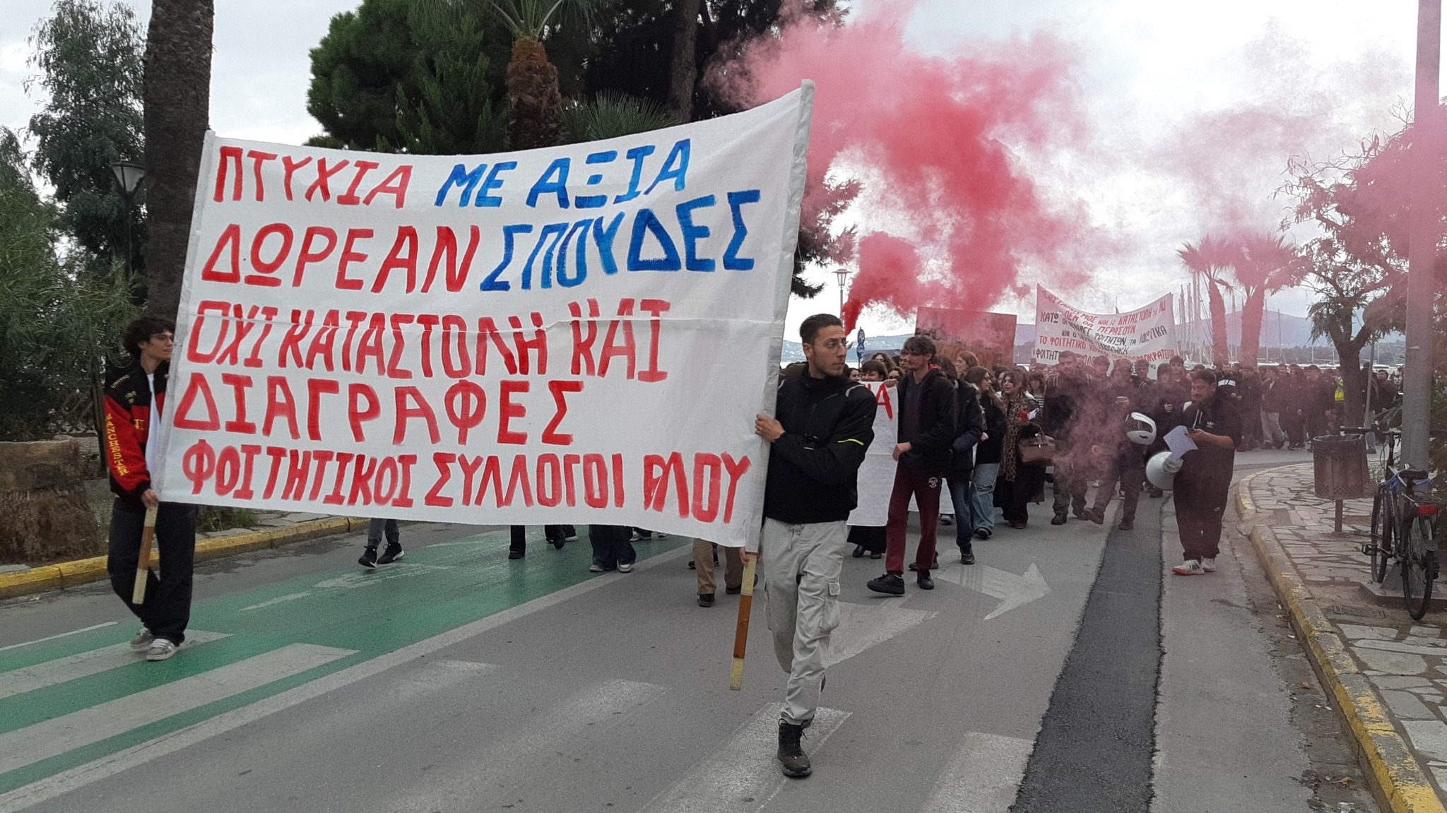 Οι φοιτητές κατήγγειλαν τις απαράδεκτες κτηριακές υποδομές στη Θόλο του κτηρίου Παπαστράτος αλλά και σε άλλα πανεπιστημιακά κτήρια, ενώ έναν λόγο για καθημερινά Τέμπη, που βιώνουν εισερχόμενοι στους χώρους των σπουδών τους.