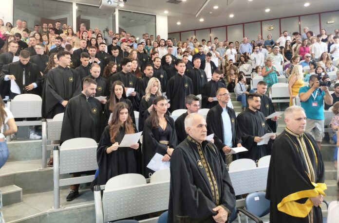 Η τελετή ορκωμοσίας στο αμφιθέατρο του Τμήματος Μηχανικών Χωροταξίας, Πολεοδομίας και Περιφερειακής Ανάπτυξης, στο Πεδίον Άρεως, στον Βόλο, σε κλίμα συγκίνησης, χαράς και ανταμοιβής των κόπων τους μετά από πέντε χρόνια σπουδών.