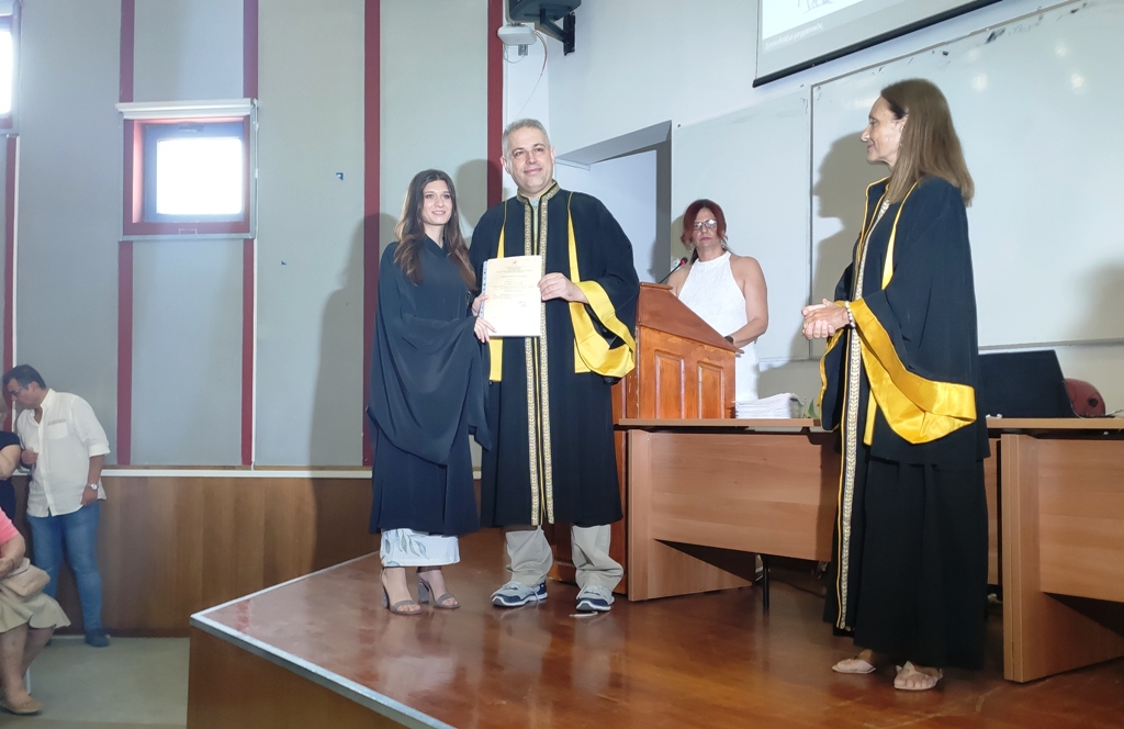 Η Ιωάννα Πανάγου, προπτυχιακή απόφοιτος του Τμήματος που διάβασε τον όρκο δήλωσε χαρούμενη που τελείωσαν τα πέντε δύσκολα χρόνια σπουδών της και συγκινημένη γιατί έκλεισε το φοιτητικό κεφάλαιο της ζωής της και περιμένει να ξεκινήσει ένα καινούργιο.