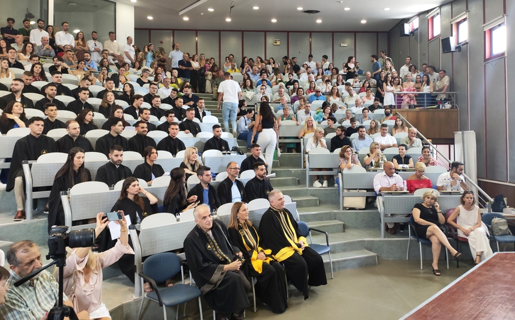 Στους απόφοιτους μίλησαν η κοσμήτορας της Πολυτεχνικής Σχολής καθηγήτρια Ευτυχία Ναθαναήλ και ο πρόεδρος του Τμήματος Ηλεκτρολόγων Μηχανικών και Μηχανικών Υπολογιστών καθηγητής Μιχ. Βασιλακόπουλος.
