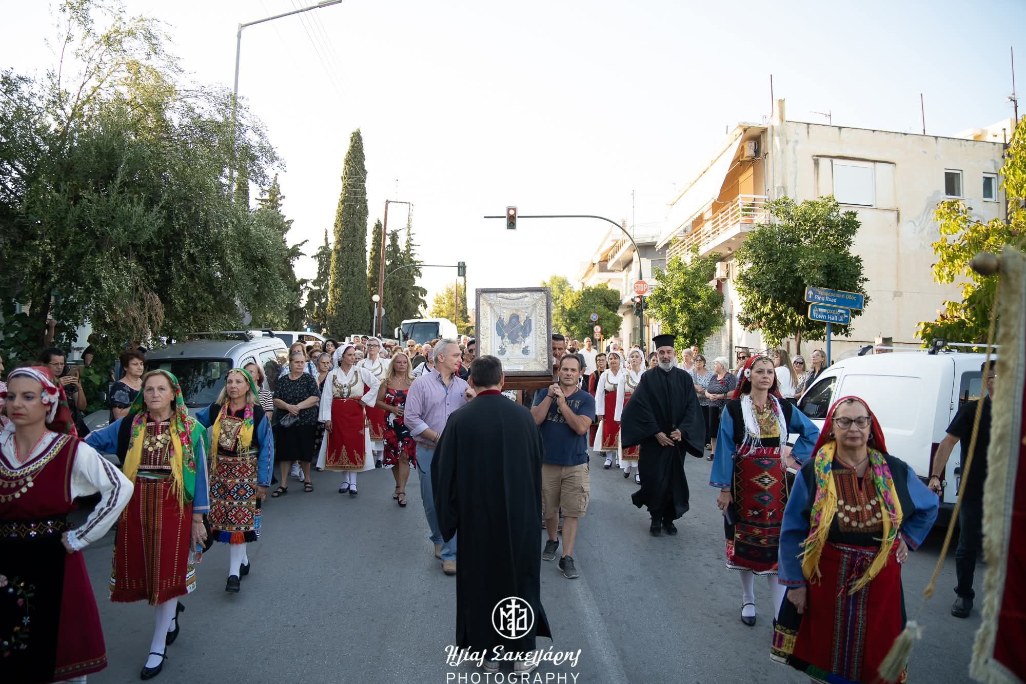 Η υποδοχή της Παναγίας έγινε με τη συμμετοχή του Ιερού Κλήρου της Μητροπόλης Δημητριάδος, ο οποίος πλαισίωσε με σεβασμό και προσευχή την πομπή και την είσοδο της Ιεράς Εικόνος στον Ναό.