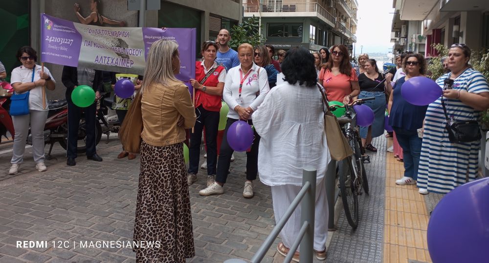 Συμβολική πορεία μνήμης πραγματοποίησαν σήμερα το πρωί μέλη και φροντιστές της Μονάδας Αντιμετώπισης Νόσου Αλτσχάϊμερ Βόλου θέλοντας να δώσουν το μήνυμα για ενίσχυση στην κατεύθυνση αντιμετώπισης της νόσου. Η πορεία ξεκίνησε από την οδό Τοπάλη και κατέληξε στην πλατεία του Αγίου Νικολάου, όπου λειτουργούσε περίπτερο με ενημερωτικό υλικό.