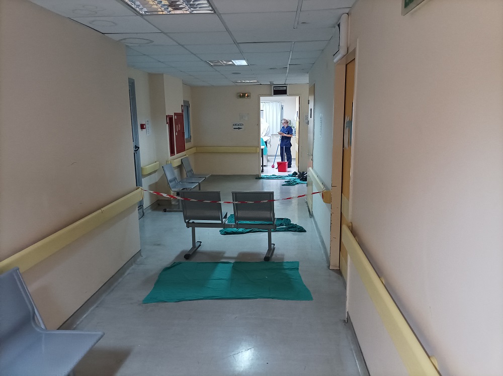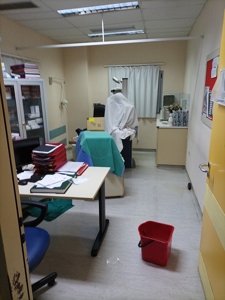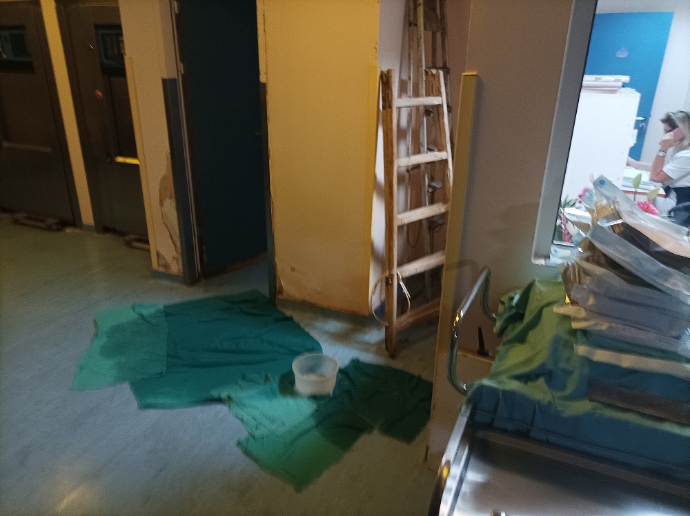 «Φανταστείτε ένα νοσοκομείο γεμάτο κουβάδες, όπου στάζουν τα ταβάνια, πέφτουν ψευδοροφές και σοβάδες. Είναι μια κατάσταση πρωτόγνωρη» ανέφερε, μεταξύ άλλων.