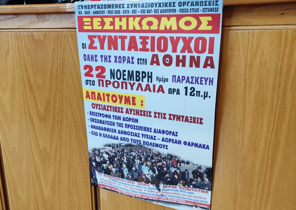 «Οι συνταξιούχοι θεωρούμε ότι δεν πάει άλλο η κατάσταση αυτή, να μας κοροϊδεύει και να μας εμπαίζει η κυβέρνηση με τόσο απαράδεκτο τρόπο, αρνούμενη να ικανοποιήσει τα βασικά από τα αιτήματα που θέτουμε, έστω και τα στοιχειώδη και να μας απαντά μονίμως ότι εν υπάρχουν χρήματα, όταν κάθε χρόνο κλέβουν με τις περικοπές από τις συντάξεις γύρω στα 8 δις το χρόνο. Υπάρχουν χρήματα και μπορούν να ικανοποιήσουν τα αιτήματά τους. Αρνούνται να το κάνουν βεβαίως γιατί υπάρχουν άλλες προτεραιότητες για την κυβέρνηση και τους οικονομικούς παράγοντες που έχουν την εξουσία στη χώρα και θέλουν αυτά τα χρήματα να τα δίνουν είτε στους επιχειρηματίες, είτε στους επενδυτές, είτε στο ΝΑΤΟ, είτε στην Ουκρανία, είτε οπουδήποτε, εκτός από τους συνταξιούχους και το λαό μας. Γι’ αυτό θα συνεχίσουμε τον αγώνα και δεν πρόκειται να κάνουμε πίσω», επισήμανε.