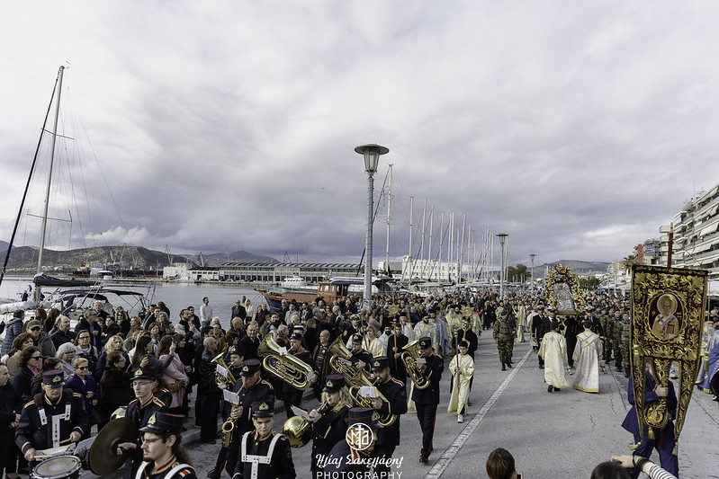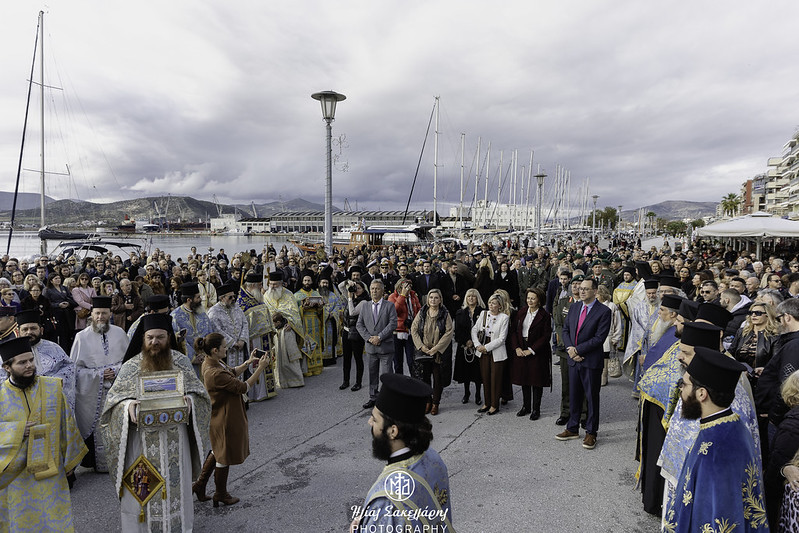 Κατά τον Μέγα Πανηγυρικό Εσπερινό, που τελέστηκε υπό δυσμενείς καιρικές συνθήκες, χοροστάτησε ο Θεοφιλέστατος Επίσκοπος Τανάγρας κ. Απόστολος, συγχοροστατούντος του Σεβ. Μητροπολίτου Δημητριάδος κ. Ιγνατίου, τη συμμετοχή πλειάδος Κληρικών μας, παρουσία των Βουλευτών Μαγνησίας κ.κ. Ζέτας Μακρή και Χρήστου Μπουκώρου, εκπροσώπων των Στρατιωτικών, Λιμενικών και Πυροσβεστικών Αρχών και της Τοπικής Αυτοδιοίκησης και πλήθους πιστών.