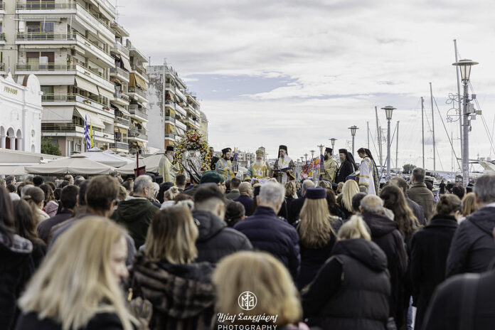 Ανήμερα της εορτής, τελέστηκε πανηγυρική Θεία Λειτουργία, ιερουργούντος του Σεβ. Μητροπολίτου Δημητριάδος κ. Ιγνατίου, συνιερουργούντος του Θεοφ. Επισκόπου Τανάγρας κ. Αποστόλου, παρουσία της Βουλευτού Μαγνησίας κ. Ζέττας Μακρή, της Προέδρου του περιφερειακού Συμβουλίου κ. Χρύσας Τσαγανού, των επικεφαλής των Στρατιωτικών, Λιμενικών, Πυροσβεστικών και Αστυνομικών Αρχών, εκπροσώπων της Τοπικής Αυτοδιοίκησης και μεγάλου πλήθους πιστών.