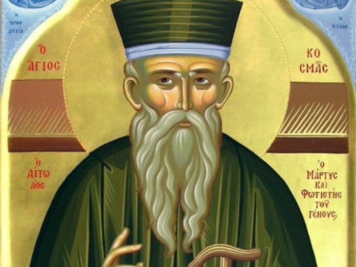 Την μνήμη του Αγίου Εθνοϊερομάρτυρος Κοσμά του Αιτωλού, του Ισαποστόλου, εορτάζει η Εκκλησία μας την Δευτέρα 24/8.
