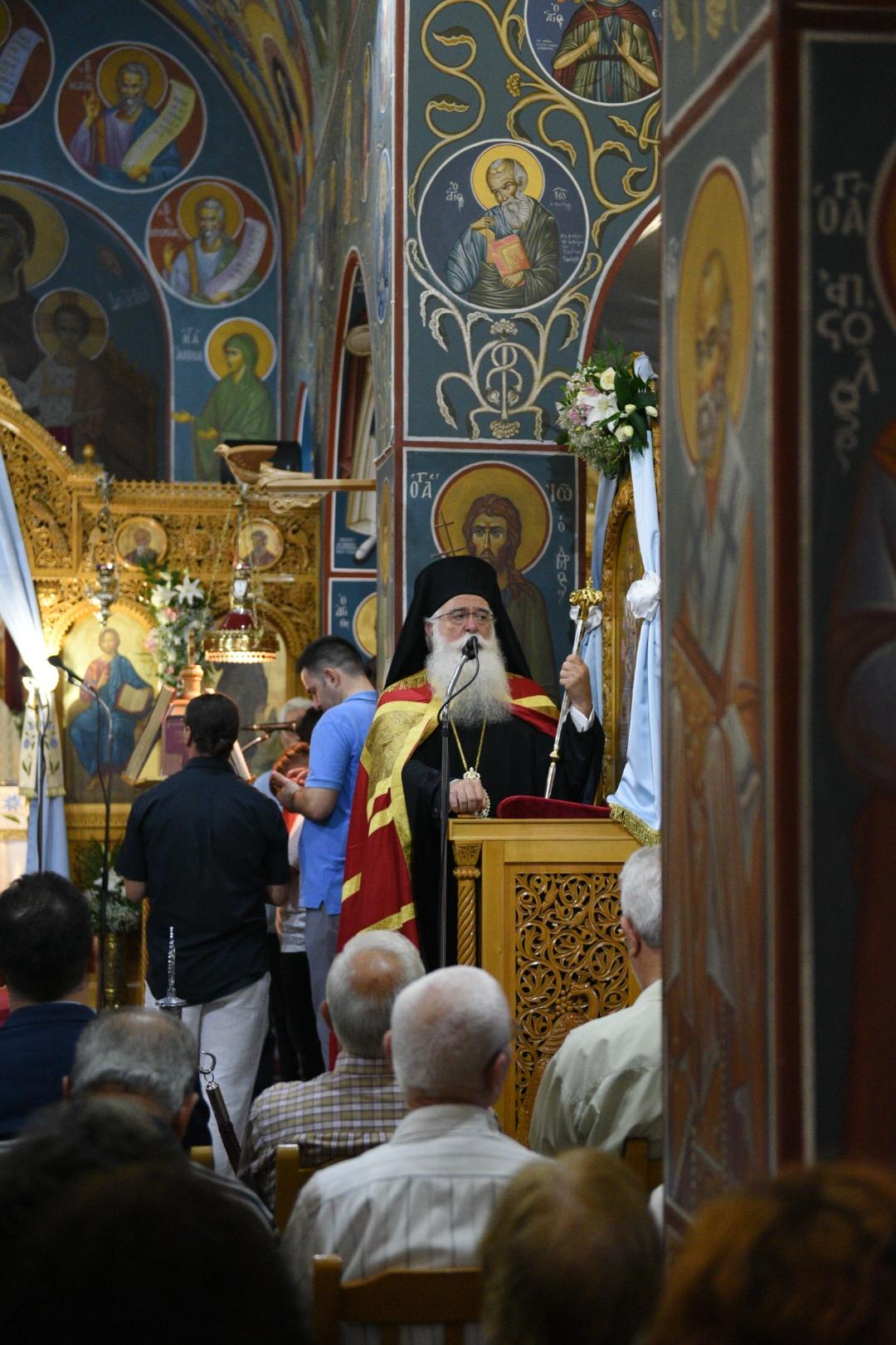 Στον Μέγα Πανηγυρικό Εσπερινό χοροστάτησε ο Σεβ. Μητροπολίτης Δημητριάδος κ. Ιγνάτιος, ο οποίος κήρυξε τον Θείο Λόγο, πλαισιωμένος από πλειάδα Κληρικών μας. Στο κήρυγμά του, ο Σεβασμιότατος, εξήρε, μεταξύ άλλων, το έργο που επιτελείται διαχρονικά στην ενορία αυτή της Αγριάς, από την οποία εξήλθε πλειάδα εκλεκτών Κληρικών και Ιεροψαλτών μας και ευχήθηκε στον νέο Εφημέριο π. Θωμά Μαλλιαρό, γνήσιο τέκνο της ενορίας, να συνεχίσει το πνευματικό και κοινωνικό έργο των προκατόχων του, που την κατέστησε σημείο αναφοράς στην περιοχή.