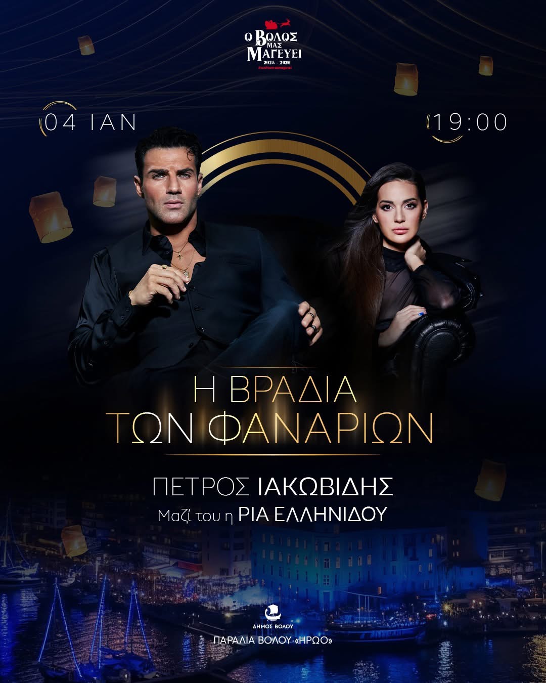 Στη φετινή εκδήλωση, όπως επισημαίνει σε ανακοίνωσή του ο Δήμος Βόλου, θα παρευρεθούν για να γιορτάσουν μαζί με το κοινό τους, ο Πέτρος Ιακωβίδης και η Ρία Ελληνίδου, καλλιτέχνες ιδιαίτερα δημοφιλείς στο κοινό.