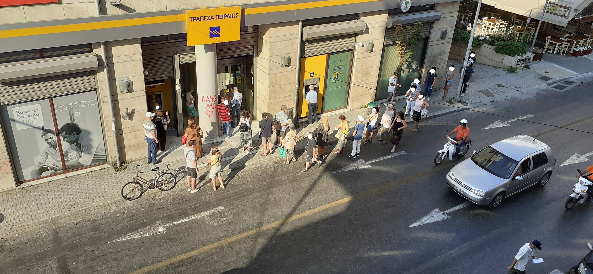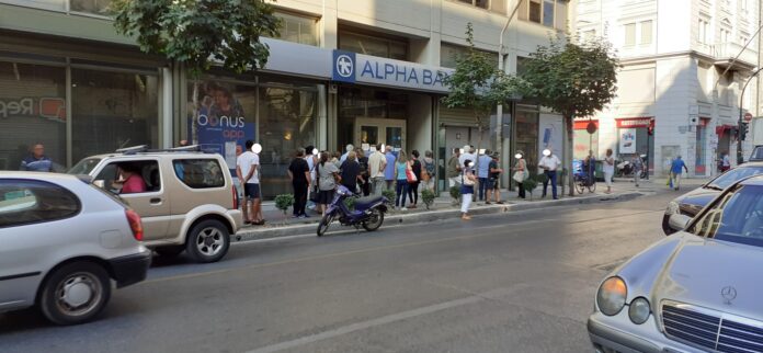 Το αδιαχώρητο επικρατεί σήμερα από πολύ νωρίς το πρωί σε όλα τα τραπεζικά καταστήματα της πόλης, με δεκάδες πολίτες να αναμένουν τη σειρά τους για να εξυπηρετηθούν. Αυτές τις ημέρες καταβάλλονται οι συντάξεις και οι περισσότεροι σπεύδουν από νωρίς για να …πιάσουν θέση στις τράπεζες και να εξυπηρετηθούν, καθώς στο εσωτερικό των τραπεζών εισέρχεται ένας μόνο συναλλασσόμενος.