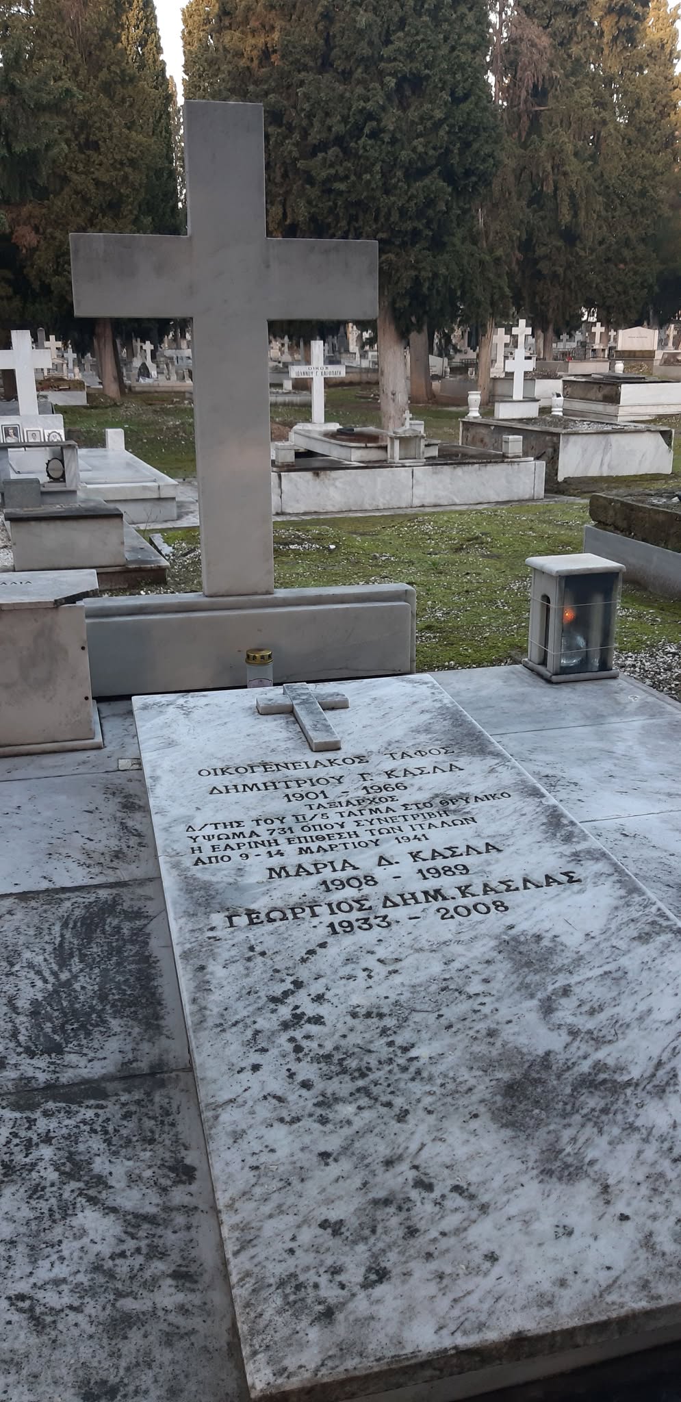 Σε άλλο σημείο του παλιού Νεκροταφείου υπάρχει ο οικογενειακός τάφος του «Δημήτριου Κασλά, Ταξίαρχου, Διοικητή του Τάγματος στο θρυλικό ύψωμα 731 όπου συνετρίβη η εαρινή επίθεση των Ιταλών από 9-14 Μαρτίου 1941».