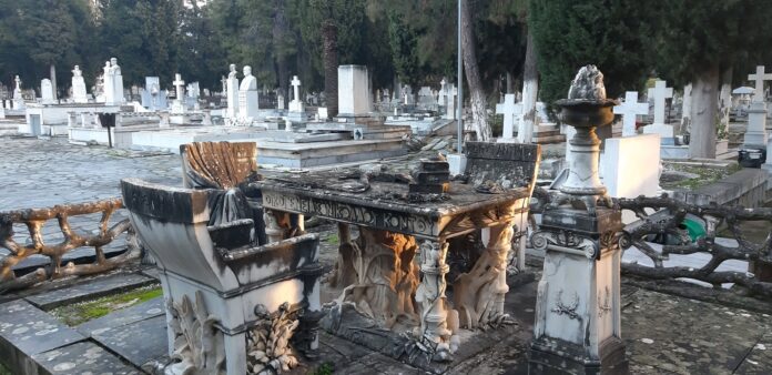 Οι πλημμύρες του Σεπτεμβρίου του 2023 έπληξαν και το παλιό Νεκροταφείο. Οι εικόνες που έκαναν τον γύρο του διαδικτύου έδειξαν την ιστορία της πόλης σημαδεμένη, στη χειρότερή της κατάσταση, με λάσπη, χώματα και εγκατάλειψη.