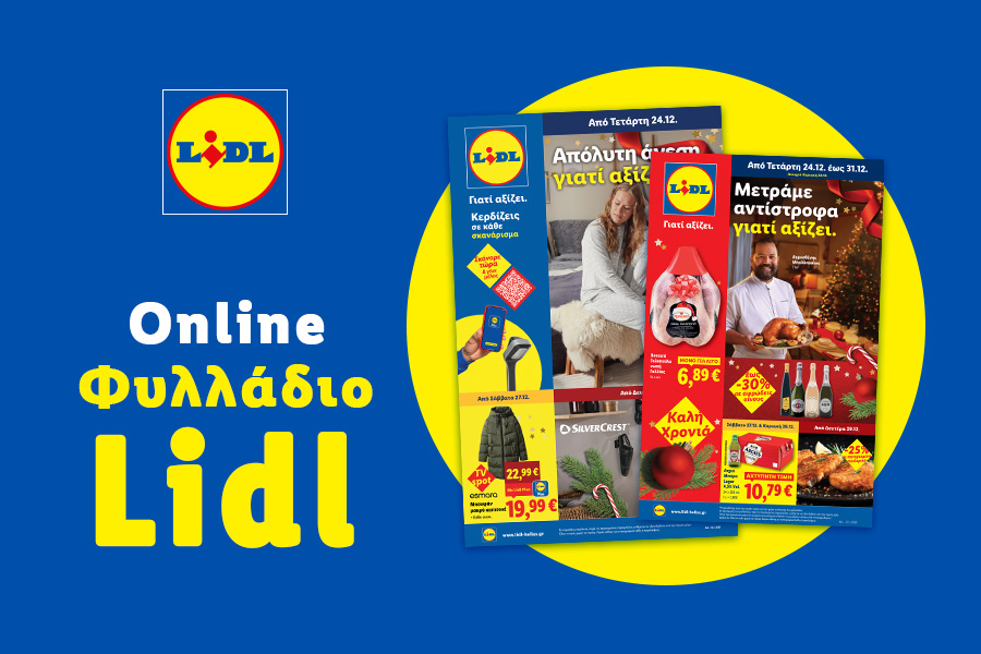 Εφοδιάσου με όλες τις σαλάτες ή τις ελιές που θα δώσουν παραπάνω γεύση στο γιορτινό τραπέζι και απόλαυσε με την παρέα σου τις μειωμένες Lidl τιμές τους! Εντυπωσίασε φίλους και γνωστούς προσφέροντας ποικιλία από γευστικά αλμυρά ή γλυκά σνακ και απολαύστε κάθε στιγμή, με αμείωτη όρεξη για πάρτι! Απόκτησε για την κάβα σου ή κάνε δώρο αγαπημένα ελληνικά κρασιά ή αφρώδεις οίνους σε τιμές έως – 30% και χαρείτε υπεύθυνα τις γιορτές, με Lidl τιμές. Προτίμησε ποικιλία από γευστικά και ποιοτικά αλμυρά ή γλυκά προϊόντα και απόλαυσε υπέροχες προτάσεις, που θα κάνουν τις γιορτές ξεχωριστές! Διάλεξε ποικιλία από γλυκές λιχουδιές και κεράσματα για μικρούς και μεγάλους και κάνε κάθε μέρα μια γλυκιά, απολαυστική γιορτή για όλους! Ανανεώσου με απαλές και ζεστές βελουτέ πιτζάμες ή λευκά είδη με μοντέρνο design & χρώματα και δώσε στιλ σε κάθε χαλαρή στιγμή σου! Οργάνωσε το γραφείο του σπιτιού σου με αξεσουάρ και είδη που χρειάζεσαι και γίνε παραγωγικός και αποτελεσματικός, από την άνεση του δικού σου χώρου! Αναζήτησε πρακτικά είδη καθημερινής χρήσης και μικροπράγματα που θα οργανώσουν το νοικοκυριό σου, εύκολα, πρακτικά και σε συμφέρουσες τιμές Lidl! Επίλεξε λουλούδια γεμάτα χρώματα και κάνε ένα όμορφο γιορτινό δώρο στην οικογένεια ή τους φίλους, με αγάπη και χαρούμενη διάθεση! Συμπλήρωσε το casual look σου με μπουφάν καπιτονέ, πουλόβερ ή παντελόνια και κάλτσες και δώσε ξεχωριστό στιλ στον χειμώνα σου, όπως σου ταιριάζει!