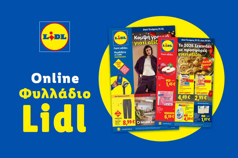 Επίλεξε πάνω από 10 veggie και vegan προϊόντα, με τη σιγουριά της ποιότητας των προϊόντων Lidl, και απόλαυσε μια γευστική και ισορροπημένη διατροφή! Επίλεξε για τις ώρες ξεκούρασης και χαλάρωσης, μόνος ή με αγαπημένη παρέα, ποτά χωρίς αλκοόλ και απολαύστε τον χρόνο σας με καλή διάθεση και χαμόγελα! Προτίμησε ποικιλία από γευστικά και ποιοτικά αλμυρά ή γλυκά προϊόντα και απόλαυσε υπέροχες προτάσεις, που θα κάνουν τις γιορτές ξεχωριστές! Διάλεξε ποικιλία από γλυκές λιχουδιές και κεράσματα για μικρούς και μεγάλους και κάνε κάθε μέρα μια γλυκιά, απολαυστική γιορτή για όλους! Ανανέωσε το look σου για τη νέα χρονιά με είδη ρουχισμού και υποδήματα που θα κάνουν κάθε έξοδό σου εντυπωσιακή και στιλάτη! Εξοπλίσου με τη σειρά αποδοτικών & αξιόπιστων εργαλείων για κάθε DIY εργασία σου και απόδειξε ότι με θέληση και τον σωστό εξοπλισμό, όλα είναι δυνατά! Υποδέξου τη νέα χρονιά και δώσε νέον αέρα και άλλη ενέργεια στον εσωτερικό ή εξωτερικό χώρο σου με όμορφα λουλούδια γεμάτα χρώμα, από τα Lidl! Κρατήσου καθημερινά σε φόρμα, με αθλητικά είδη ένδυσης Esmara και εξασφάλισε μοντέρνο αθλητικό look και καθημερινή άνεση σε συμφέρουσες Lidl τιμές!
