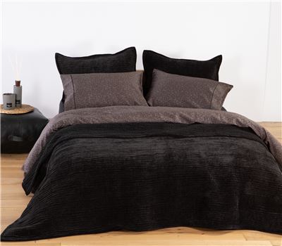 Η κρεβατοκάμαρα γίνεται καταφύγιο ζεστασιάς. Παπλώματα σε βαθιές χειμερινές αποχρώσεις, σεντόνια που αγκαλιάζουν το σώμα και κουβερτοπαπλώματα με υφές που προσθέτουν βάθος και πολυτέλεια.