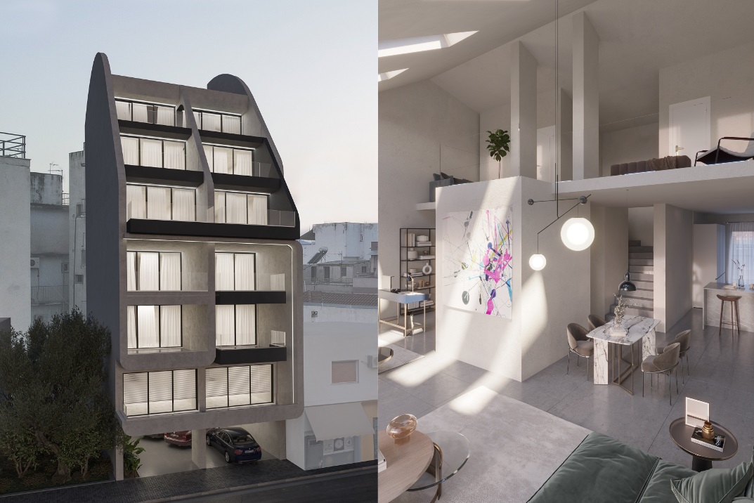 Οι κάθετες λευκές επιφάνειες, που άλλοτε δημιουργούν καμπύλες και άλλοτε εισχωρούν μέσα σε γραμμικούς όγκους και τα μεγάλα ανοίγματα της όψης, είναι αυτά που αποτελούν στοιχεία της σύγχρονης και μοντέρνας αρχιτεκτονικής. Ένα κτήριο ενεργειακής κλάσης Α+, βασισμένο στις βιοκλιματικές αρχές σχεδιασμού.