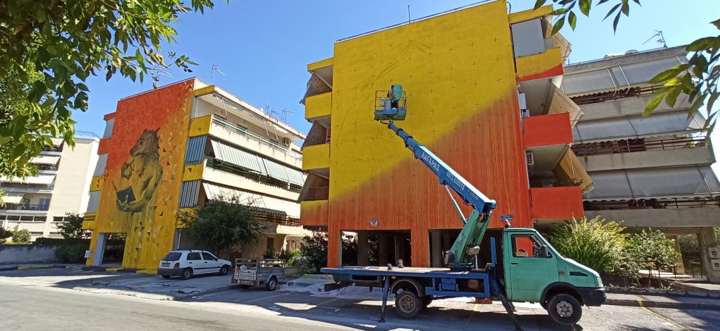 Η δεύτερη τοιχογραφία στα πλαίσια του φετινού φεστιβάλ δημόσιων τοιχογραφιών στον Βόλο, το “CityCall”, της Urbanact μόλις ξεκίνησε.