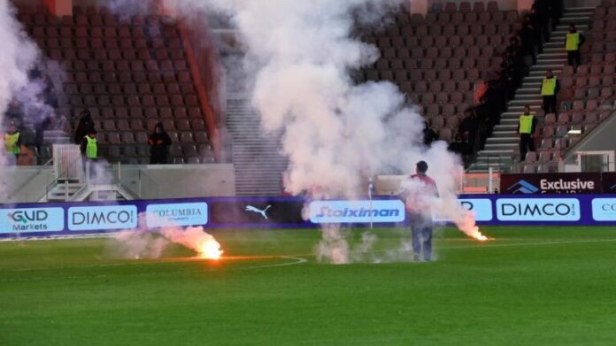 Ειδικότερα, οι δράστες ηλικίας 19. 22 και 23 χρονών, συνελήφθησαν περιμετρικά σταδίου μετά το πέρας ποδοσφαιρικού αγώνα, καθότι νωρίτερα, ευρισκόμενοι σε κερκίδες του σταδίου κατά τη διάρκεια του αγώνα, είχαν προβεί σε χρήση πέντε συνολικά πυροτεχνικών συσκευών.