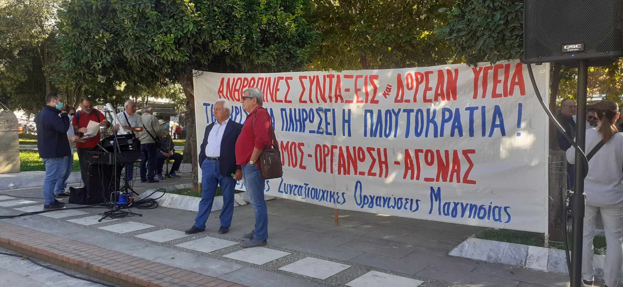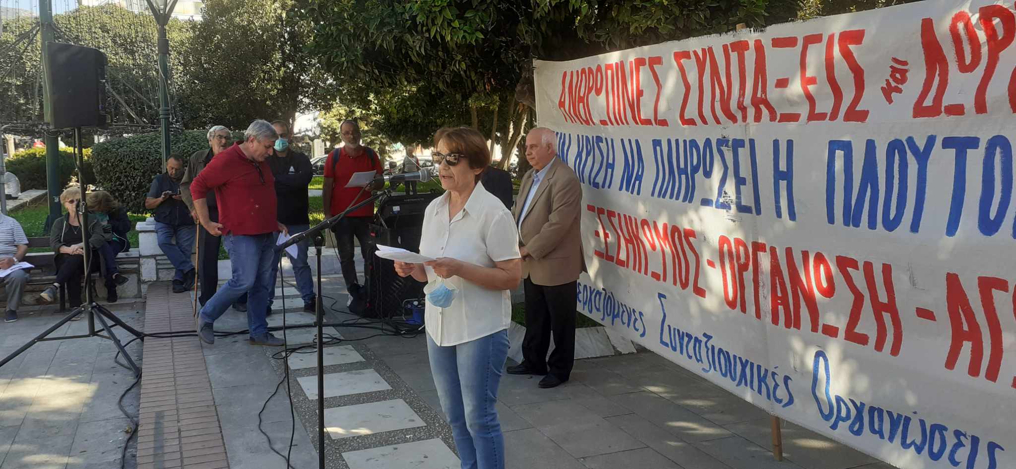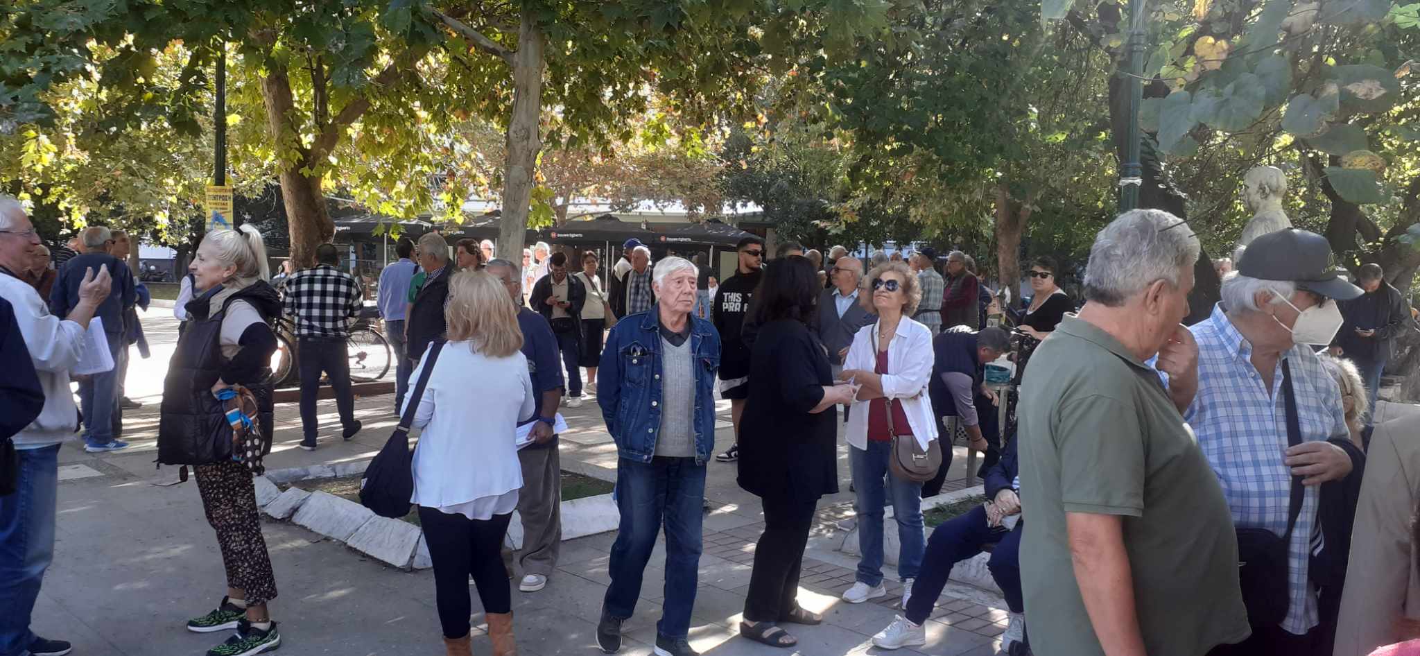 Οι συνταξιούχοι ΙΚΑ, Δημοσίου, ΟΑΕΕ (ΤΕΒΕ-ΤΣΑ), ΝΑΤ, ΟΑΕΕ (ΤΑΕ) και ΑΓΕΤ συγκεντρώθηκαν στην Πλατεία Ελευθερίας, ενώ παρόντες ήταν και μέλη των Ομοσπονδιών, υπογραμμίζοντας τις δυσκολίες που βιώνουν καθημερινά οι συνταξιούχοι και ζητούν από την κυβέρνηση αυξήσεις όλων των συντάξεων στο ύψος του πληθωρισμού και κατώτερη σύνταξη στο 80% του κατώτερου μισθού, καταβολή 13ης και 14ης σύνταξης, άμεση καταβολή αναδρομικών σε όλους τους συνταξιούχους, χωρίς δικαστήρια και προαπαιτούμενα, ενσωμάτωση της προσωπικής διαφοράς στις καταβαλλόμενες συντάξεις για όλους, στη σύνταξη χηρείας να αποδίδεται το 70% του αποθανόντος, χωρίς περικοπή.