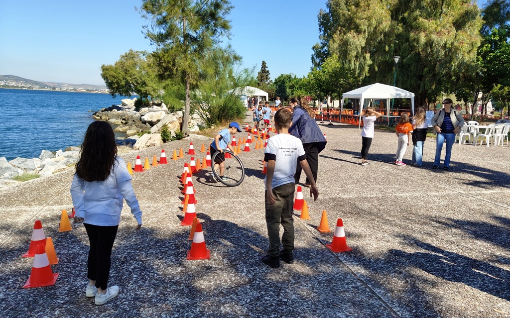 Στο πάρκο Αναύρου στήθηκε μια ποδηλατική πίστα δεξιοτεχνίας, που είναι βασισμένη στους 17 στόχους των Ηνωμένων Εθνών για τη βιώσιμη ανάπτυξη, που τα παιδιά περνούσαν διάφορα εμπόδια, που δεν τα συναντούν στην καθημερινότητά τους και οδήγησαν τα ποδήλατα όπως πρέπει ακόμη και στα εμπόδια.