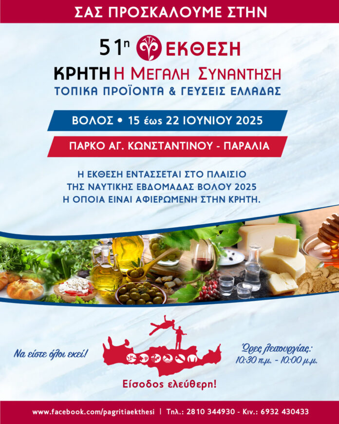 Η έκθεση έχει τίτλο «Κρήτη–Η Μεγάλη Συνάντηση» Τοπικά προϊόντα & γεύσεις Ελλάδας» και οι επισκέπτες θα έχουν την ευκαιρία να γνωρίσουν αυθεντικά προϊόντα από την Κρήτη και άλλες περιοχές της Ελλάδας.