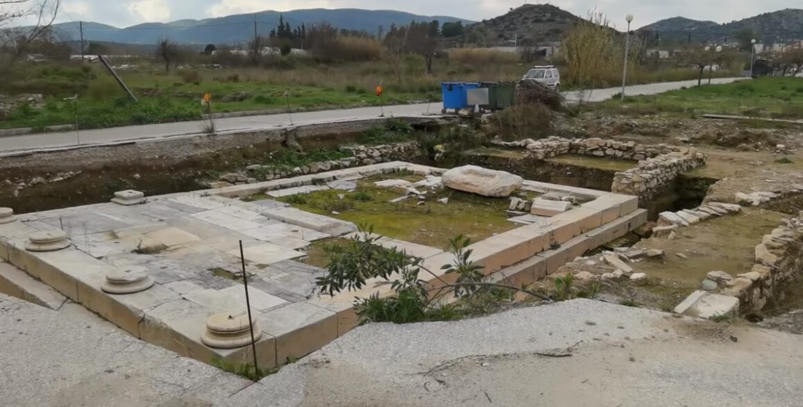Σύμφωνα με την απάντηση του Υπουργείου Πολιτισμού, τα αρχιτεκτονικά κατάλοιπα λατρευτικού οικοδομήματος, ενός από τα ελάχιστα σωζόμενα δείγματα μνημειακής αρχιτεκτονικής που αφορά στις λατρευτικές πρακτικές της αρχαίας πόλης της Δημητριάδας, αποκαλύφθηκαν κατά τη διενέργεια σκαπτικών εργασιών κατασκευής υποδομών φυσικού αερίου, και ακολούθως σωστικών ανασκαφών, εντός του πολεοδομικού ιστού του Βόλου, στη συμβολή των οδών Παρμενίδου και Αγίου Τριαντάφυλλου.