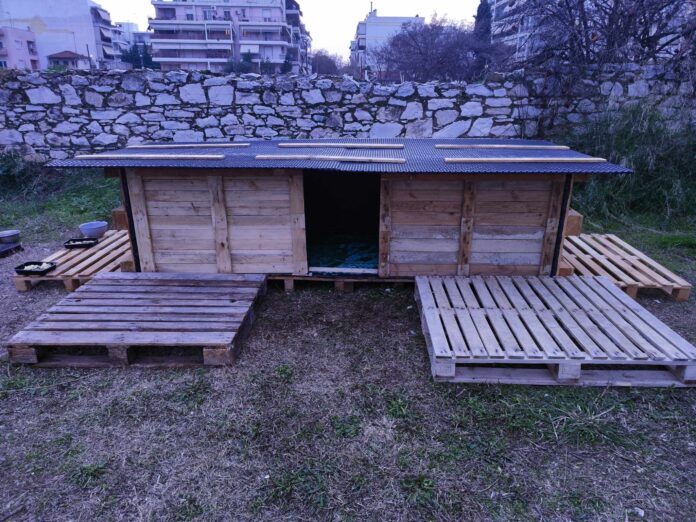 Βόλος: Φιλόζωοι έφτιαξαν ένα μεγάλο ξύλινο σπίτι για τα αδέσποτα