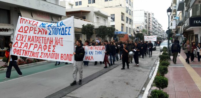 Συγκέντρωση και πορεία πραγματοποιήσαν μαθητές και φοιτητές νωρίτερα στον Βόλο. Την ώρα που οι νέοι είχαν συγκεντρωθεί έξω από το κτήριο Παπαστράτος και είχαν διακόψει την κυκλοφορία, άκουσαν τη σειρήνα ασθενοφόρου. Αμέσως “άνοιξαν” τη συγκέντρωσή τους, για να διευκολύνουν την κίνηση για να περάσει το το ασθενοφόρο.