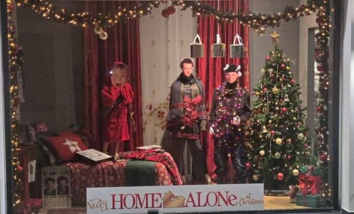 Η έμπνευση των ιδιοκτητών του καταστήματος «Οικοένδυση»- Φιλίτσα στην οδό Παύλου Μελά στον Βόλο να διακοσμήσουν τη χριστουγεννιάτικη βιτρίνα με τους πρωταγωνιστές της γνωστής και αγαπημένης ταινίας «Μόνος στο σπίτι» ήταν αρκετή για να εντυπωσιάσει πελάτες και όσους καταναλωτές πέρασαν από το σημείο! Η πρωτότυπη αυτή διακόσμηση κατάφερε να κερδίσει όχι μόνο τις εντυπώσεις, αλλά και τον διαγωνισμό για την καλύτερη χριστουγεννιάτικη βιτρίνα του 2025, του Εμπορικού Συλλόγου Βόλου.,