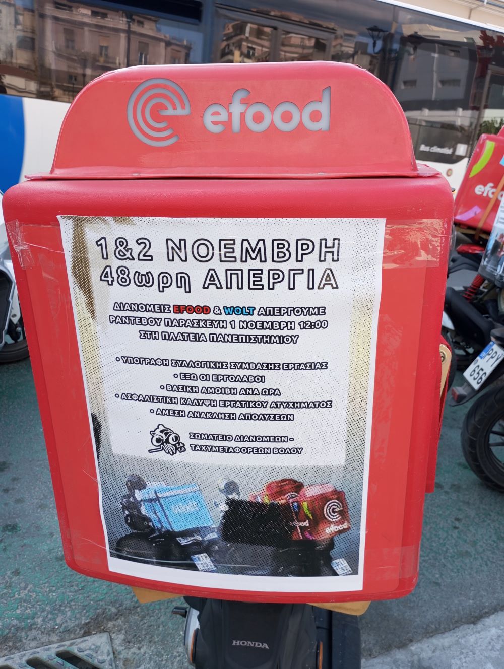 Απεργούν για ένα 48ωρο οι εργαζόμενοι διανομείς της wolt και της e- food διεκδικώντας την ικανοποίηση μιας σειράς αιτημάτων, που σχετίζονται με εργασιακά ζητήματα.