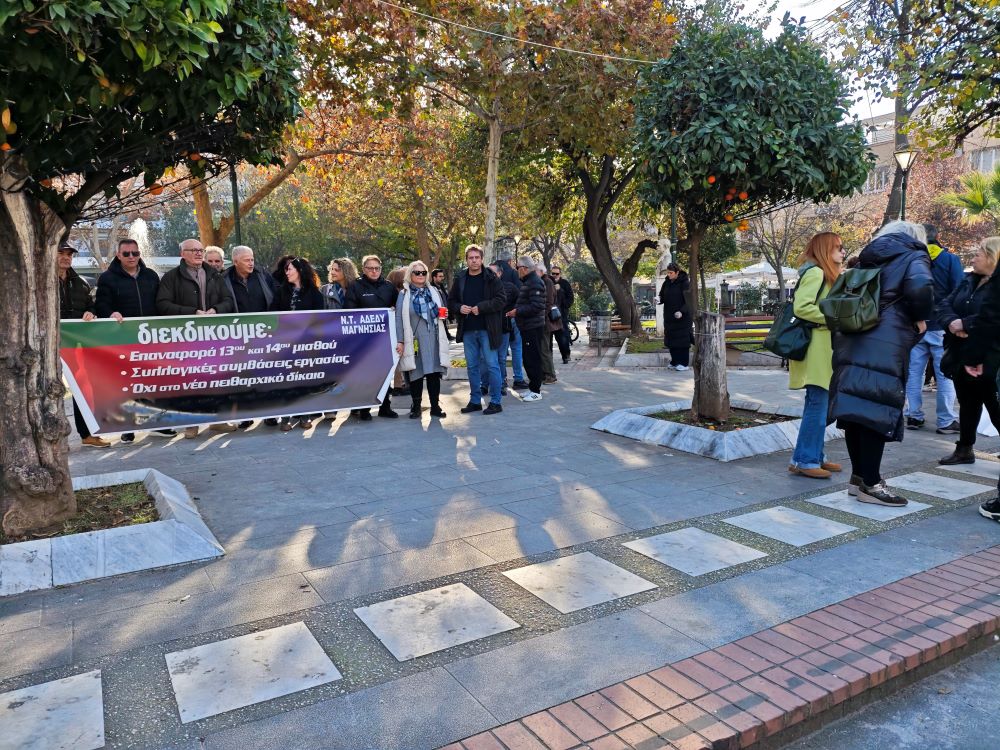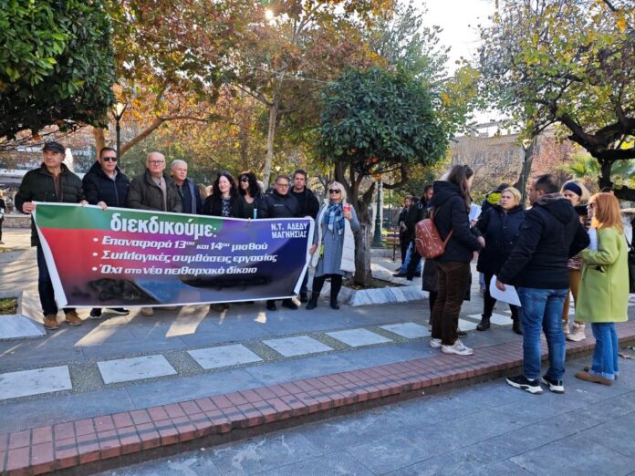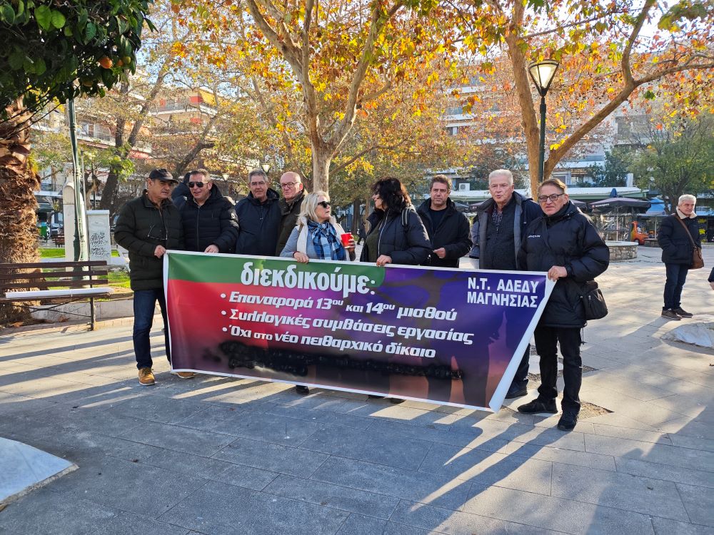 Απεργιακή συγκέντρωση με αρκετά χαμηλή συμμετοχή πραγματοποιήθηκε σήμερα το πρωί στην πλατεία Ελευθερίας από το Νομαρχιακό Τμήμα της ΑΔΕΔΥ Μαγνησίας, με αφορμή την ψήφιση του προϋπολογισμού στη Βουλή, ο οποίος σύμφωνα με τους δημοσίους υπαλλήλους είναι εκ νέου φορομπηχτικός για την πλειοψηφία των πολιτών. Η πρόεδρος των εργαζομένων στους ΟΤΑ της Μαγνησίας Θάλεια Στάχτου, παραδέχτηκε ότι η συμμετοχή ήταν μικρή, αποδίδοντάς την στα οικονομικά προβλήματα που αντιμετωπίζουν οι περισσότεροι με αποτέλεσμα να μην μπορούν να χάσουν κάποιο μεροκάματο. Όπως ανέφερε η κινητοποίηση αφορά στον προϋπολογισμό ο οποίος υποστήριξε φορτώνει με πολλούς φόρους τους εργαζομένους και δίνει πάρα πολλά προνόμια στους μεγάλους επιχειρηματικούς ομίλους. Δήλωσε ότι τόσο οι εργαζόμενοι όσο και οι δημόσιοι υπάλληλοι λαμβάνουν μισθούς οι οποίοι δεν φτάνουν για να βγάλουν τον μήνα, ενώ ο 13ος και ο 14ος μισθός εξακολουθεί να μην τους δίδεται παρανόμως.