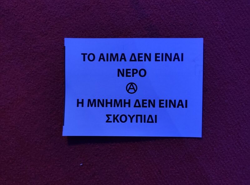 Η παρουσία της Αστυνομίας για την αποφυγή τυχόν επεισοδίων ήταν διακριτική, ενώ στη διάρκεια της πορείας νεαροί έριξαν τρικάκια με συνθήματα.