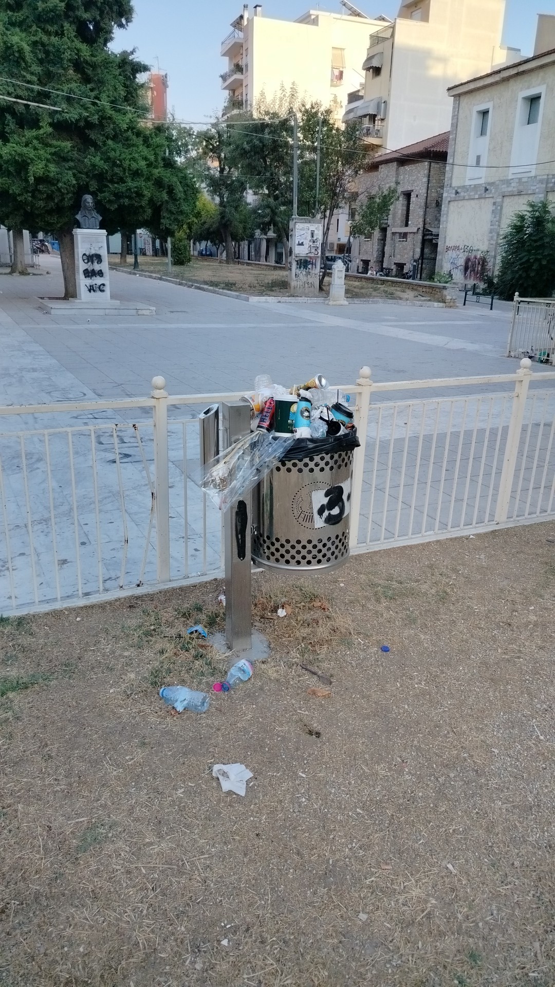 Γεμάτα σκουπίδια είναι τα καλαθάκια σε όλο το προαύλιο της Μεταμόρφωσης, εκεί που σήμερα το πρωί, μετά τους αγιασμούς των σχολείων έγινε χαμός από παιδάκια, που πήγαν να παίξουν και να τρέξουν, όπως συμβαίνει καθημερινά. Ωστόσο, για τέταρτη ημέρα, όπως αναφέρουν γονείς, ο δήμος δεν έχει πλησιάσει την περιοχή, δεν έχει μαζέψει τα σκουπίδια, με αποτέλεσμα αυτά να ξεχειλίζουν, να έχουν γεμίσει το πλακόστρωτο και την παιδική χαρά, με ό,τι συνεπάγεται αυτό για τη δημόσια υγεία, αλλά και για την εικόνα της πόλης.