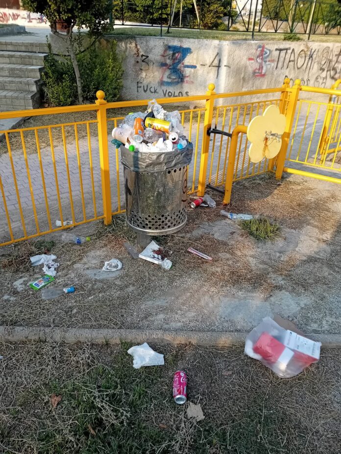 Για του λόγου το ασφαλές το καλαθάκι στην παιδική χαρά της Αγίας Παρασκευής, τα σκουπίδια έχουν ξεχειλίσει και κοντεύουν να κατακλύσουν τον χώρο, εν τούτοις αυτοί που κάνουν χρήση της εγκατάστασης εξακολουθούν να πετούν σκουπίδια επιβαρύνοντας και άλλο την όλη κατάσταση.