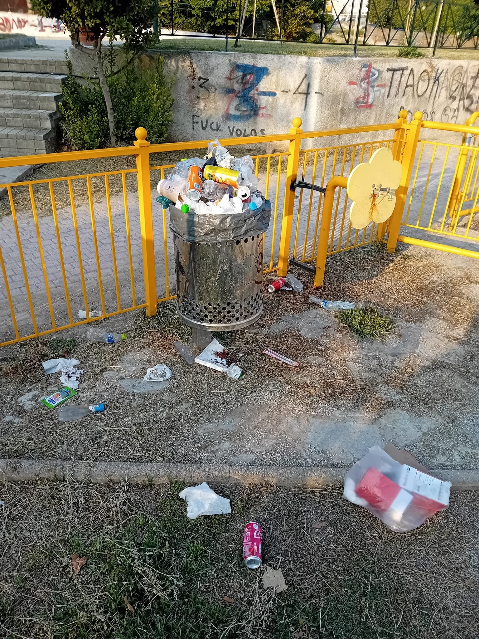 Διαμαρτύρονται στην Αγία Παρασκευή για την κατάσταση των μικρών καλαθιών απορριμμάτων τα οποία, όπως ισχυρίζονται, είναι γεμάτα για τουλάχιστον 5 ημέρες, χωρίς να έχει περάσει αυτό το διάστημα κάποιο συνεργείο από την καθαριότητα του Δήμου Βόλου για να μαζέψει τα σκουπίδια.