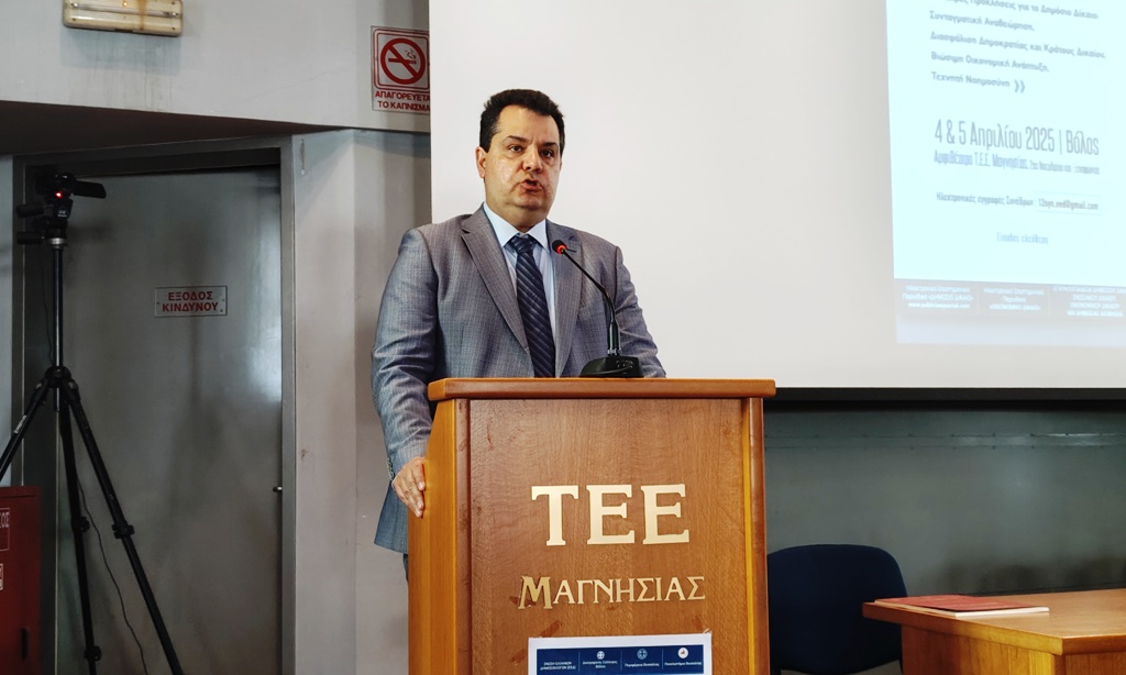 Ξεκίνησε σήμερα το πρωί στον Βόλο το 12ο ετήσιο διεθνές επιστημονικό συνέδριο της Ένωσης Ελλήνων Δημοσιολόγων με θέμα «επίκαιρες προκλήσεις για το Δημόσιο Δίκαιο: Συνταγματική Αναθεώρηση, Διασφάλιση Δημοκρατίας και Κράτους Δικαίου, Βιώσιμη Οικονομική Ανάπτυξη, Τεχνητή Νοημοσύνη».