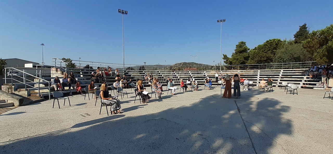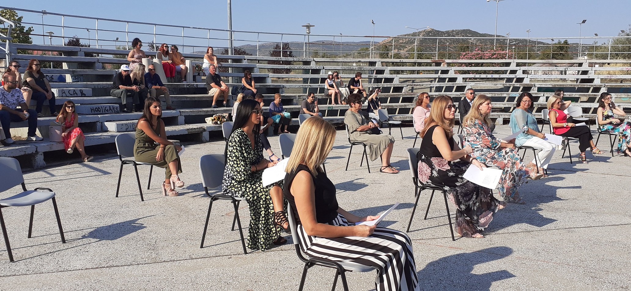 Το κλίμα στην ορκωμοσία ήταν πολύ χαρούμενο, με τους λίγους συγγενείς να βρίσκονται στα καθίσματα του αμφιθεάτρου, ενώ φίλοι των αποφοίτων δεν σταματούσαν να χειροκροτούν και να υψώνουν ακόμη και μικρά πανό.