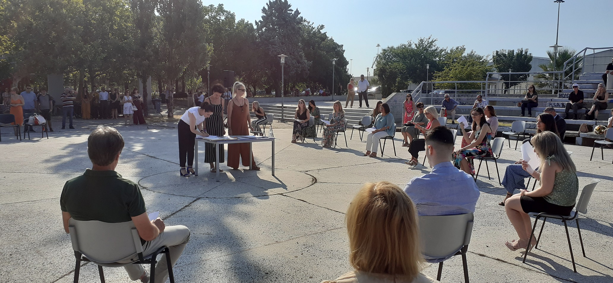Στο ανοιχτό αμφιθέατρο της Πολυτεχνικής Σχολής, με αποστάσεις και αντισηπτικά πραγματοποιήθηκε σήμερα η τελετή ορκωμοσίας των αποφοίτων προπτυχιακών και μεταπτυχιακών σπουδών της Σχολής Ανθρωπιστικών Σπουδών του Πανεπιστημίου Θεσσαλίας. Παρόλο που το σκηνικό της ορκωμοσίας ήταν πρωτόγνωρο, με αποστάσεις αλλά και αντισηπτικά, δεν έλειψε η συγκίνηση τόσο από τους αποφοίτους και τους συγγενείς τους, καθώς ένας μεγάλος κύκλος σπουδών ολοκληρώθηκε με επιτυχία, έστω και στην περίοδο του κορωνοϊού.