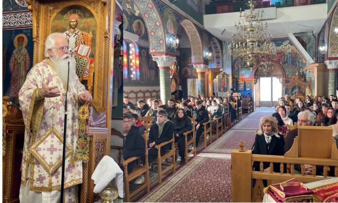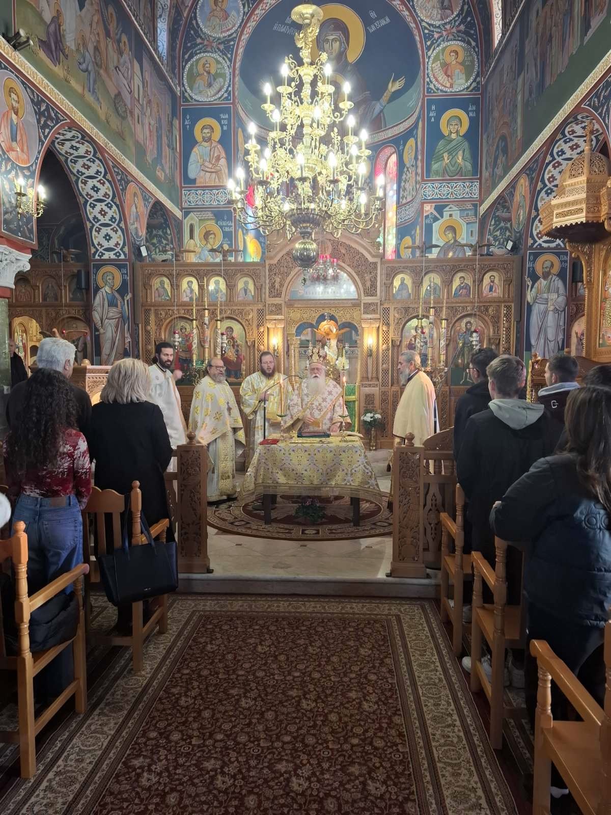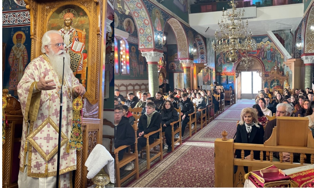 Από τη μεριά του, ο Μητροπολίτης, σύμφωνα με την ανακοίνωση της Μητρόπολης, εξέφρασε τη χαρά του για την ευκαιρία να λειτουργήσει με τους μαθητές και τις μαθήτριες, υπογραμμίζοντας ότι, «μαζί συλλειτουργήσαμε σήμερα, γιατί μόνος μου ούτε εγώ μπορώ να τελέσω αυτή τη Θεία Λειτουργία, ούτε εσείς χωρίς τους ιερείς μου. Έτσι λειτουργούμε, όλοι μαζί» Στη συνέχεια αναφέρθηκε στο βαθύτερο νόημα της Θείας Ευχαριστίας, τονίζοντας ότι «το ψωμί και το κρασί γίνονται Σώμα και Αίμα Χριστού, και όταν κοινωνούμε γινόμαστε ένα με τον Χριστό και ένα μεταξύ μας, σαν αδέρφια, σαν ένα σώμα». Επισημαίνοντας ότι η Θεία Κοινωνία είναι πηγή ενότητας και αληθινής αγάπης, προσέθεσε: «αν κοινωνώ από ένα ποτήρι δεν μπορώ να πονάς εσύ και να μην πονάω, δεν μπορώ να σε περιφρονώ, να σε ξεχωρίζω ή να σε κατηγορώ. Αν είμαι του Χριστού, πρέπει να κάνω αυτό που θα έκανε ο Χριστός».