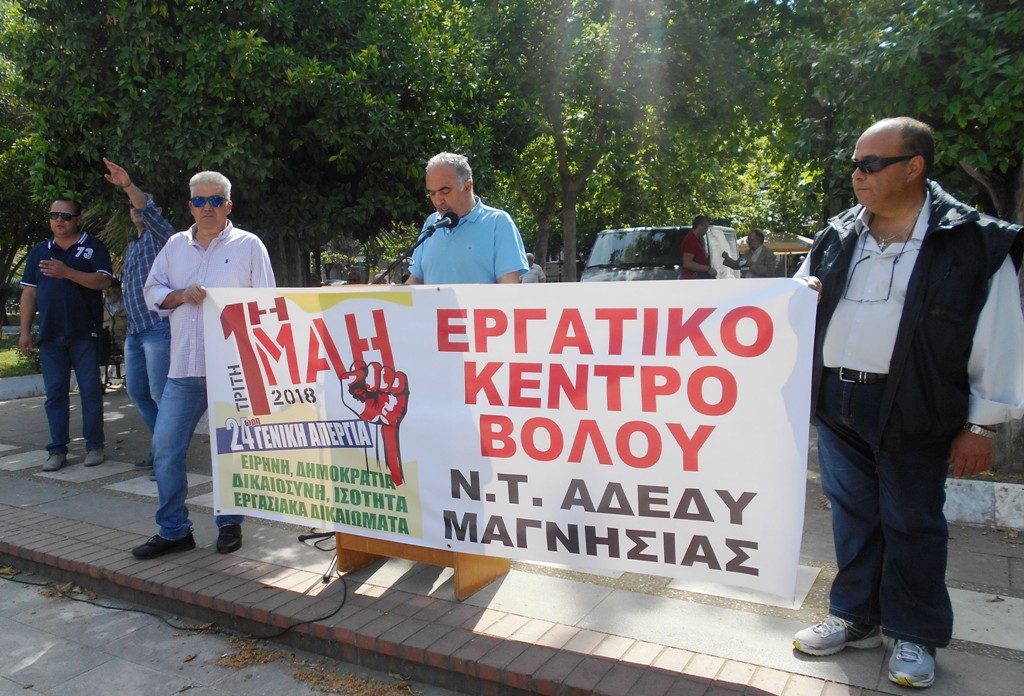 Υποτονική και με πολύ μικρή συμμετοχή κόσμου ήταν η συγκέντρωση του εργατικού Κέντρου Βόλου και της ΑΔΕΔΥ στην απεργιακή συγκέντρωση της Πλατείας Ελευθερίας για την Πρωτομαγιά, ενώ ακολούθησε πορεία και κατάθεση στεφάνων στο Ταχυδρομείο.