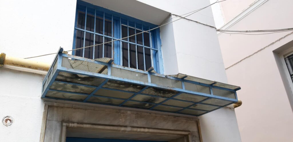 Κουφώματα σάπια, είσοδοι που φοβάσαι να περάσεις, υπόγειο που θυμίζει τα κύματα της θάλασσας. Κάπως έτσι είναι το 1ο ΕΠΑΛ, που σύμφωνα με τον Υποδιευθυντή του σχολείου κ. Γιάννη Στούπα, φιλοξενεί 290 μαθητές και 48 εκπαιδευτικούς.