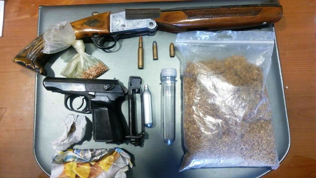 Ένα ζευγάρι χρηστών ναρκωτικών συνέλαβαν σήμερα το μεσημέρι στο Βόλο αστυνομικοί του Τμήματος Δίωξης Ναρκωτικών, με αφορολόγητο καπνό, μικροποσότητα χασίς και σπόρων κάνναβης, ένα κυνηγετικό όπλο με πριονισμένη κάννη και ένα αεροβόλο πιστόλι ρέπλικα.