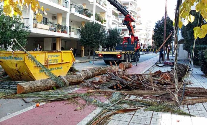 Ο φοίνικας, που βρισκόταν σε πεζοδρόμιο έξω από πολυκατοικία, είχε πάρει κλήση από το πρωί και οι ένοικοι περίμεναν ότι θα πέσει.