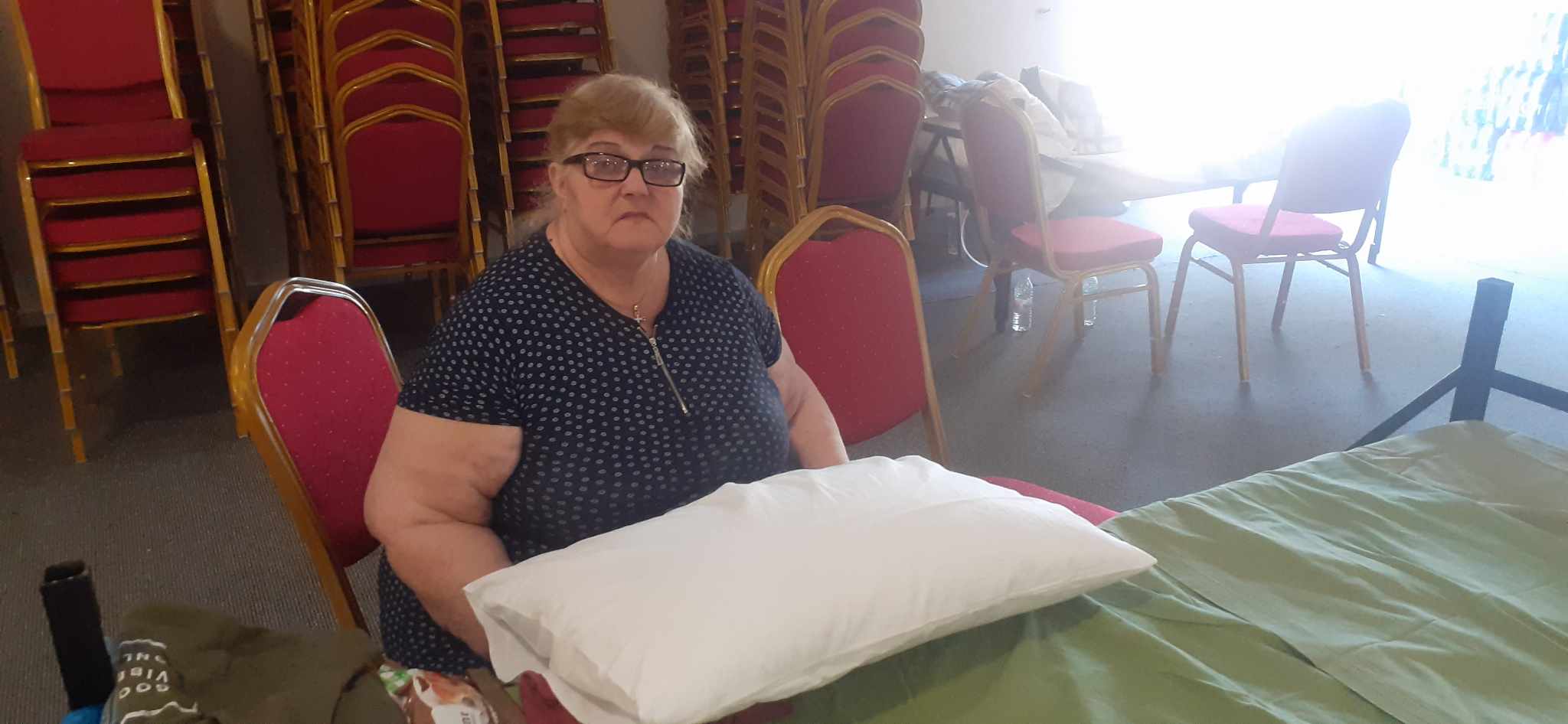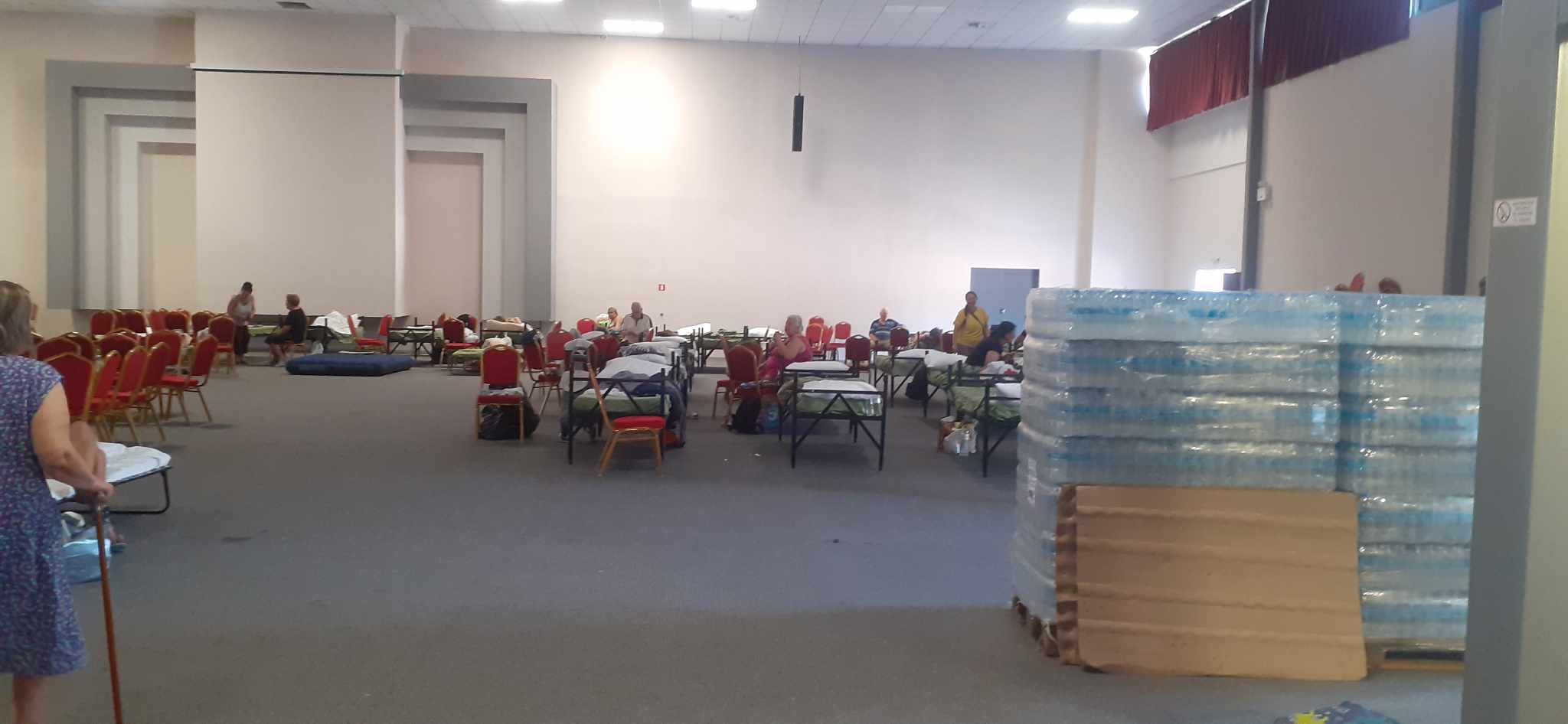 Η κ. Ευαγγελία, κάτοικος Ν. Αγχιάλου τρόμαξε, φοβήθηκε με την έκρηξη κι έφυγε. Η κατάσταση που περιγράφει ήταν πανικού. Μετά τις εκρήξεις η αστυνομία περνούσε με το περιπολικό και ειδοποιούσε τον κόσμο να φύγει. Εκείνη έφυγε με την ανιψιά της, πίσω της όμως έμεινε ο σύζυγός της. Κι αν η κ. Ευαγγελία ήρθε στο Εκθεσιακό Κέντρο, το μυαλό της ήταν πίσω, στον σύζυγό της.